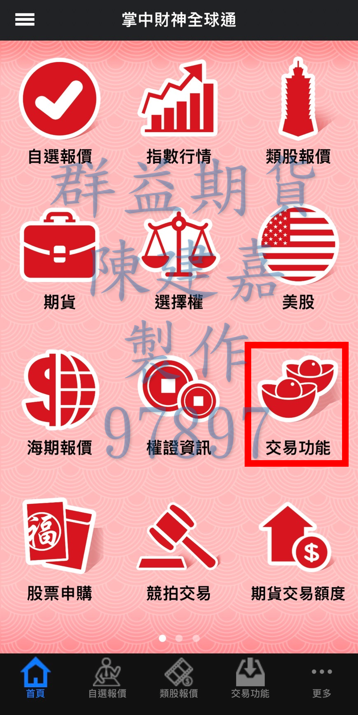 交易功能:1.期貨下單/2.選擇權下單/3.期貨停損下單;